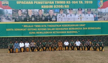 Dalam amanat Kasad TNI Jenderal TNI Andi Perkasa, yang dibacakan Brigjen TNI Hassanudin, S.I.P, Mengatakan bahwa Upacara penutupan ini sekaligus menandai berakhirnya Program TMMD ke-104 yang dilaksanakan serentak di 50 kabupatenl kota di seluruh Nusantara. TMMD yang diprogramkan 3 kali di tahun 2019 ini adalah wujud pengabdian TNI bersama Kementerian dan Lembaga Negara lainnya, untuk membantu mempercepat pembangunan di daerah demi tercapainya kesejahteraan bagi rakyat.