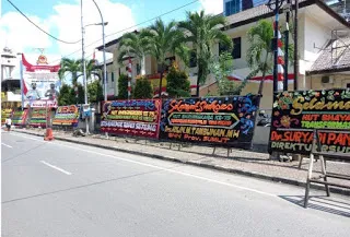 Medan// DeteksiNusantara.Com. Menjelang HUT Bhayangkara Ke - 75 Karangan bunga ucapan HUT Bhayangkara Ke - 75 sejumlah Instansi dan Perusahaan, tertata berjajar rapi di depan Mapolsek Medan Timur. bukan hanya satu atau dua tetapi puluhan karangan bunga terpampang berderet. Kamis, (01/07/2021)
